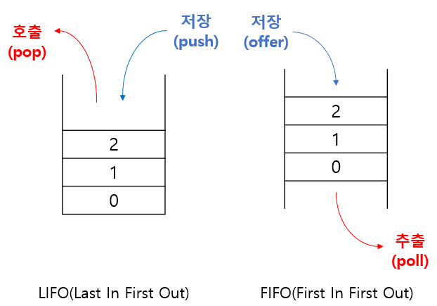 LIFO : 마지막에 저장한 데이터를 가장 먼저 꺼내는 구조