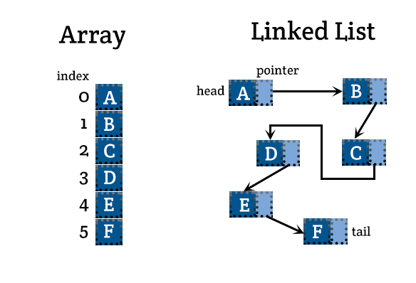 이러한 배열의 단점을 보완하기 위해서 LinkedList라는 자료구조가 고안되었다. 배열은 모든 데이터가 연속적으로 존재하지만 링크드 리스트는 불연속적으로 존재하는 데이터를 서로 연결한 현태로 구성되어 있다.